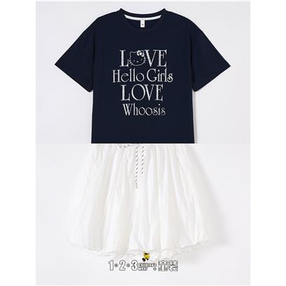 >>藏青 夏款 女大童6F20842 DDDD时尚短袖套装1+2=3童装连锁