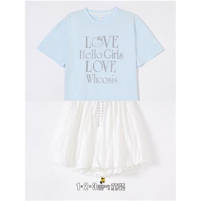浅蓝 夏款 女大童6F20842 DDDD时尚短袖套装1+2=3童装连锁