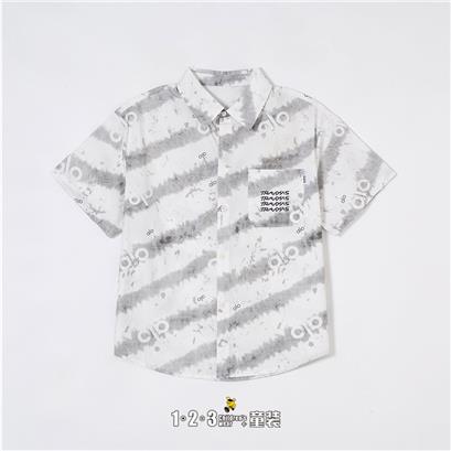 >>灰 夏款 男大童6M20327 DDDD时尚短袖衬衫1+2=3童装连锁