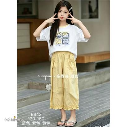 >>黄 夏款 女中童B842 BDDD时尚短袖套装123童装连锁