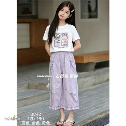 紫 夏款 女中童B842 BDDD时尚短袖套装123童装连锁