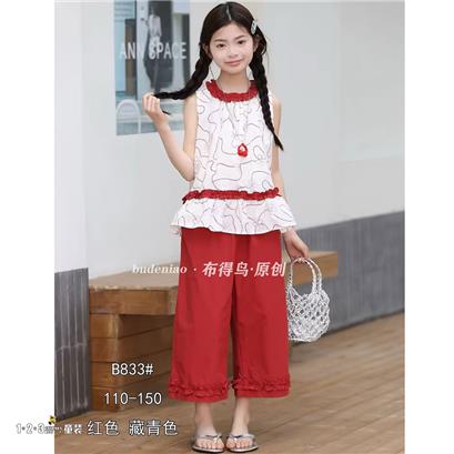 红 夏款 女中童B833 BDDD时尚短袖套装123童装连锁
