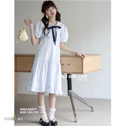 >>蓝 夏款 女大童837 HYDD时尚短袖连衣裙123童装连锁
