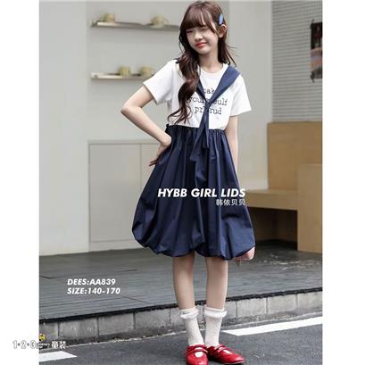 >>藏青 夏款 女大童839 HYDD时尚短袖连衣裙123童装连锁