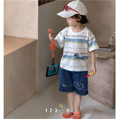 >>蓝 夏款 男小童6013 MXDD时尚短袖套装123童装连锁