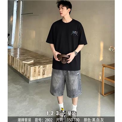 >>黑 夏款 男大童2802 DKDD时尚短袖套装123童装连锁