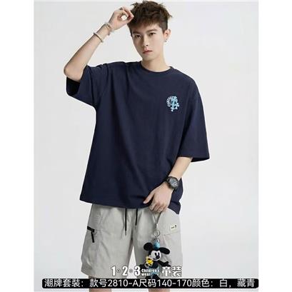 >>藏青 夏款 男大童2810-A DKDD时尚短袖套装123童装连锁