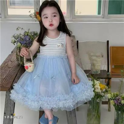 >>蓝 夏款 女小童2620 DEDD时尚短袖连衣裙123童装连锁