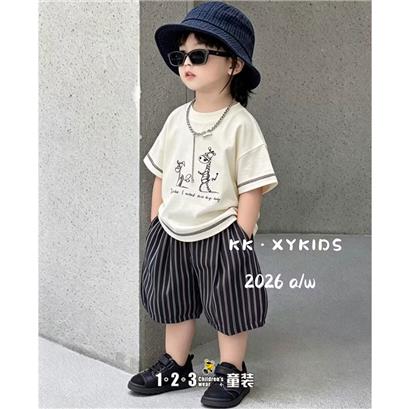 >>米黄 夏款 男小童02-17 KKDD时尚短袖套装123童装连锁
