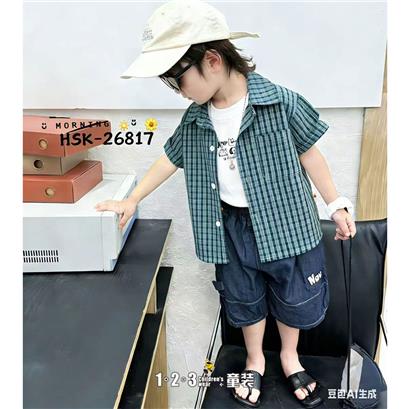 >>浅蓝 夏款 男小童108 MMDD时尚短袖衬衫123童装连锁