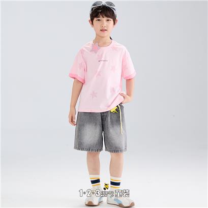 >>【五一限价18.9元】【特价】粉 夏款 男小童6B9097 FXDD时尚短T1+2=3童装连锁