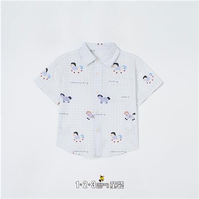 【五一限价25.9元】蓝 夏款 男小童6M20393 FXDD时尚短袖衬衫1+2=3童装连锁