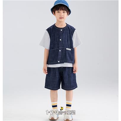 >>【五一限价65.9元】原色牛仔 夏款 男小童6M20431 FXDD时尚短袖套装1+2=3童装连锁