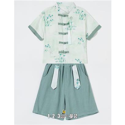 >>【五一限价41.9元】(多多同款)绿 夏款 男小童6M20436 FXDD时尚短袖套装1+2=3童装连锁