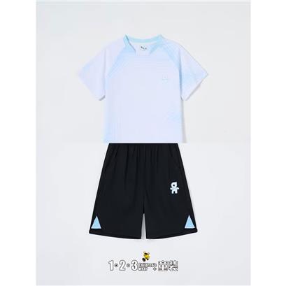 【五一限价36.9元】浅蓝 夏款 男小童6M20494 FXDD时尚短袖套装1+2=3童装连锁
