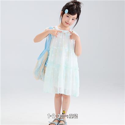 >>【五一限价60.9元】绿 夏款 女中童6F20366 FXDD时尚短袖连衣裙1+2=3童装连锁