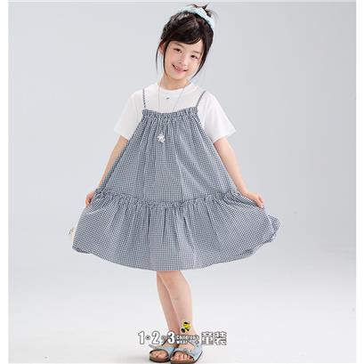 >>【五一限价57.9元】黑 夏款 女中童6F20471 FXDD时尚短袖连衣裙1+2=3童装连锁