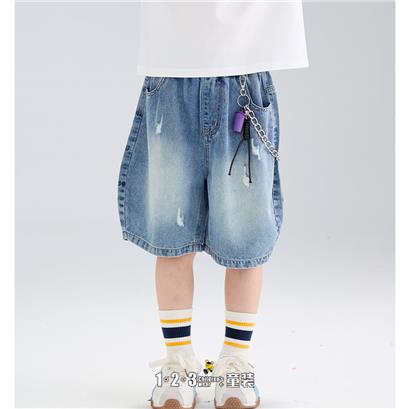 >>【五一限价34.9元】【特价】牛仔蓝 夏款 90-140男小童6M20451 FXDD时尚牛仔短裤1+2=3童装连锁