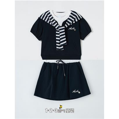 【五一限价64.9元】藏青 夏款 女小童6F20457 FXDD时尚短袖套装1+2=3童装连锁