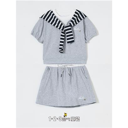 >>【五一限价64.9元】烟灰 夏款 女小童6F20457 FXDD时尚短袖套装1+2=3童装连锁