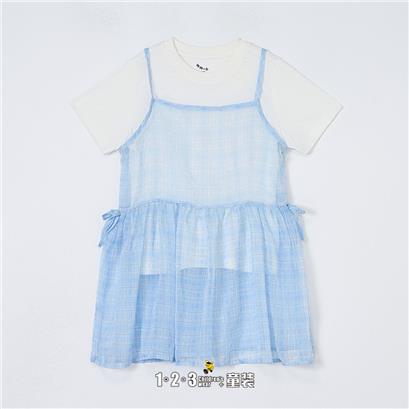 【五一限价41.9元】白 夏款 女小童M390 NMDD时尚无袖连衣裙1+2=3童装连锁