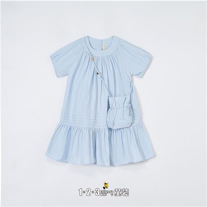 >>【五一限价41.9元】蓝 夏款 女小童6F20431 FXDD时尚短袖连衣裙1+2=3童装连锁