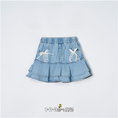 >>【五一限价35.9元】【特价】牛仔蓝 夏款 90-140女小童6F20342 FXDD时尚腰裙、纱裙1+2=3童装连锁