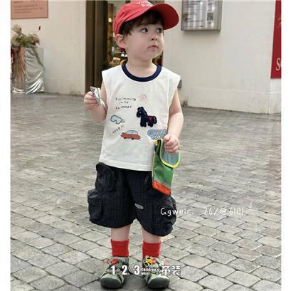 【五一限价19.9元】【特价】白 夏款 男小童6101 GGDD时尚背心1+2=3童装连锁