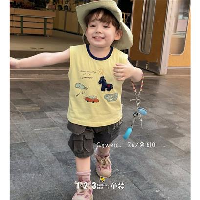 【五一限价19.9元】【特价】黄 夏款 男小童6101 GGDD时尚背心1+2=3童装连锁