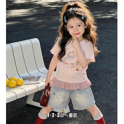 >>【五一限价22.9元】【特价】粉 夏款 女小童892 HRDD时尚短T1+2=3童装连锁