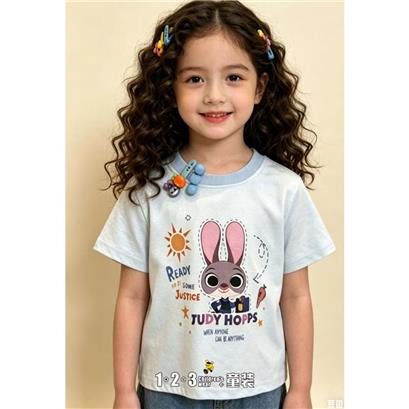 >>【五一限价23.9元】【特价】浅蓝 夏款 女小童A26057 FXDD时尚短T1+2=3童装连锁