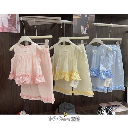 【五一限价50.9元】黄 夏款 女小童26118 TSDD时尚背心套装1+2=3童装连锁