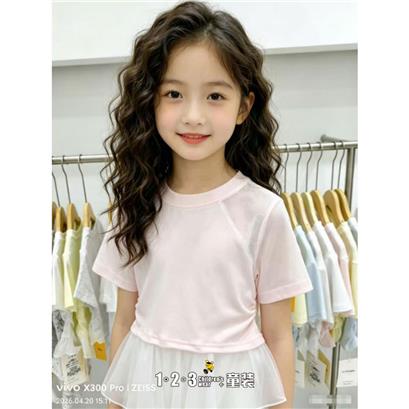 >>【五一限价22.9元】【特价】粉 夏款 女中童26057 MMDD时尚短T1+2=3童装连锁