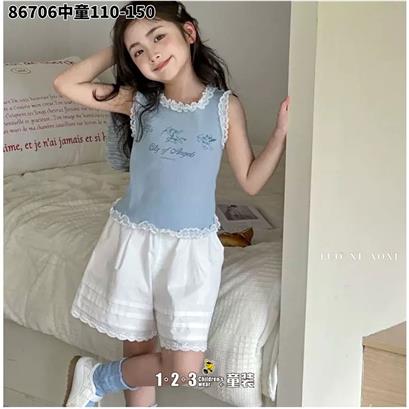 【五一限价21.9元】【特价】绿 夏款 女中童86706 MMDD时尚背心1+2=3童装连锁