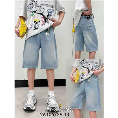 >>【五一限价45.9元】【特价】浅蓝 夏款 29-33男大童26105 TDDD时尚牛仔短裤1+2=3童装连锁