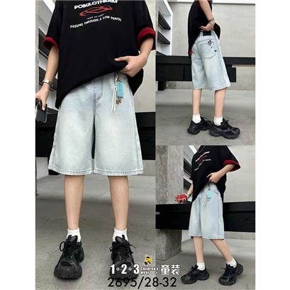 >>【五一限价44.9元】【特价】浅蓝 夏款 28-32男大童2695 TDDD时尚牛仔短裤1+2=3童装连锁