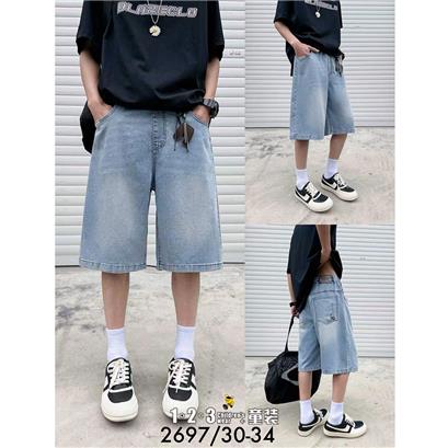 >>【五一限价45.9元】【特价】浅蓝 夏款 30-34男大童2697 TDDD时尚牛仔短裤1+2=3童装连锁