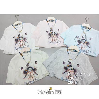 >>【五一限价40.9元】【特价】烟灰 夏款 女大童26076 KRDD时尚短T1+2=3童装连锁