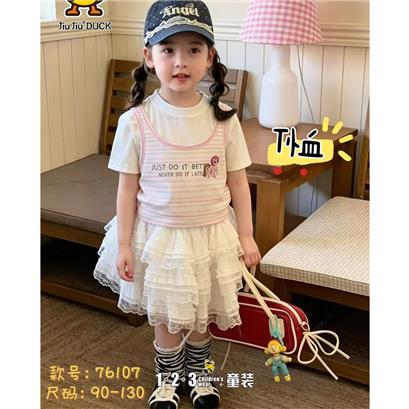 【五一限价34.9元】【特价】粉 夏款 女小童76107 CJDD时尚短T1+2=3童装连锁
