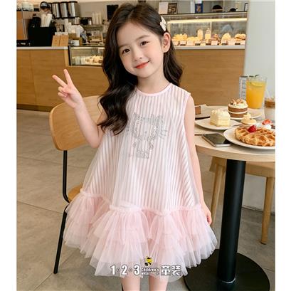 >>【五一限价38.9元】粉 夏款 女小童8871 MSDD时尚无袖连衣裙1+2=3童装连锁