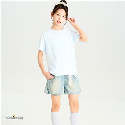 >>(多多同款)【特价】浅蓝 夏款 女大童0336 DDDD时尚短T1+2=3童装连锁