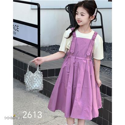 >>紫 夏款 女中童2613 JJDD时尚短袖套装123童装连锁
