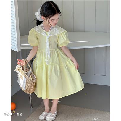 黄 夏款 女中童8804 XMDD时尚短袖连衣裙123童装连锁