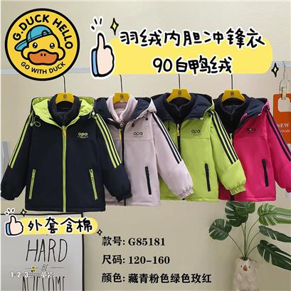 >>(新国标90绒羽绒内胆)绿 冬款 男中童G85181 CJDD时尚厚棉衣123童装连锁