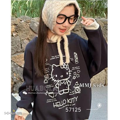 >>【特价】黑 冬款 女大童57125 XXDD时尚厚套头衫123童装连锁