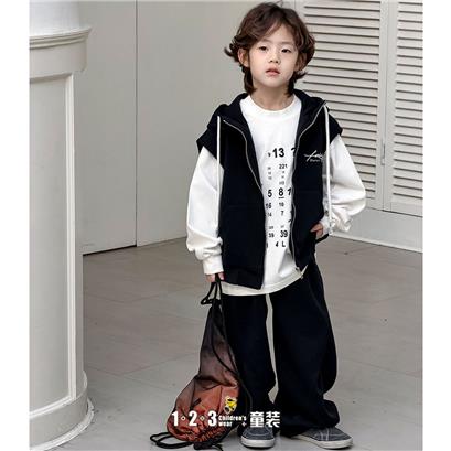 《潮酷》黑 春款 男中童CK2605 HHDD时尚长袖套装1+2=3童装连锁