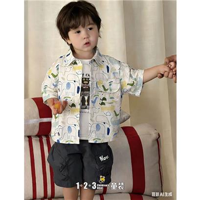 白 夏款 男小童122 MMDD时尚短袖衬衫123童装连锁