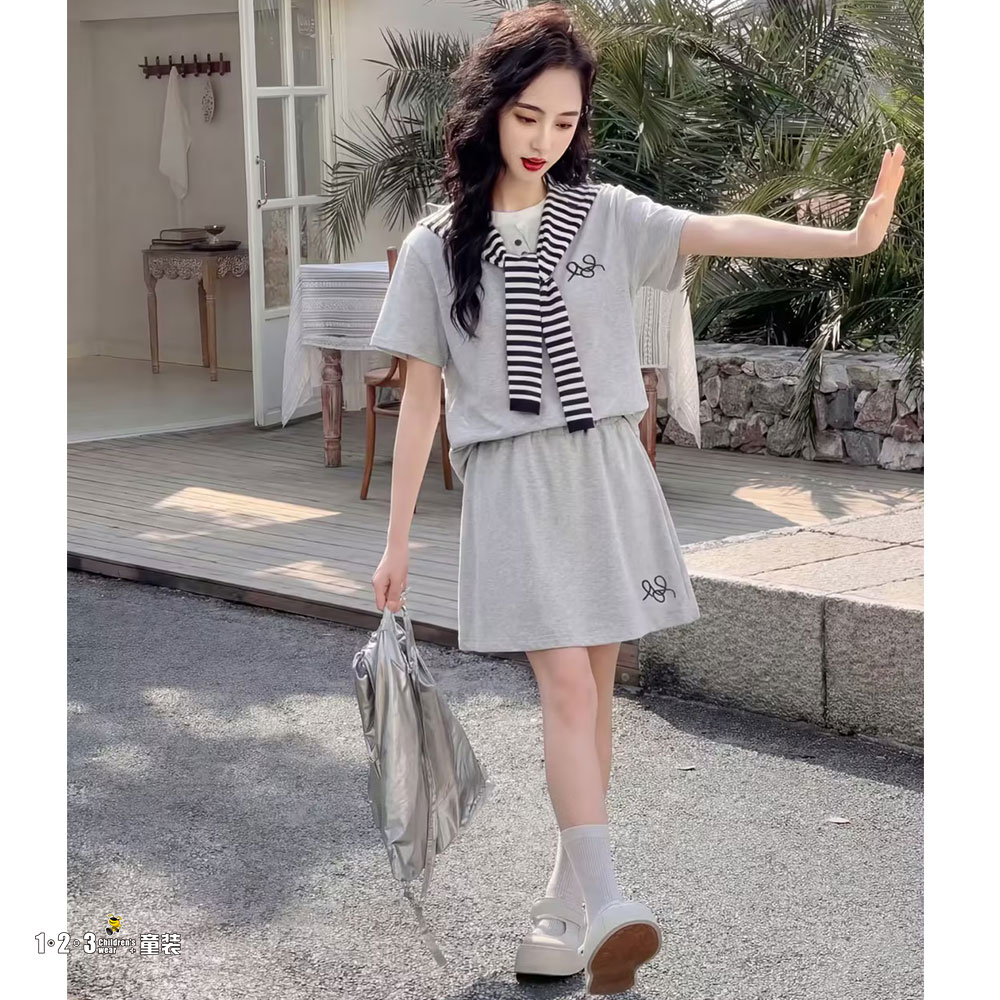 灰 夏款 女大童028 YGDD时尚短袖套装123童装连锁