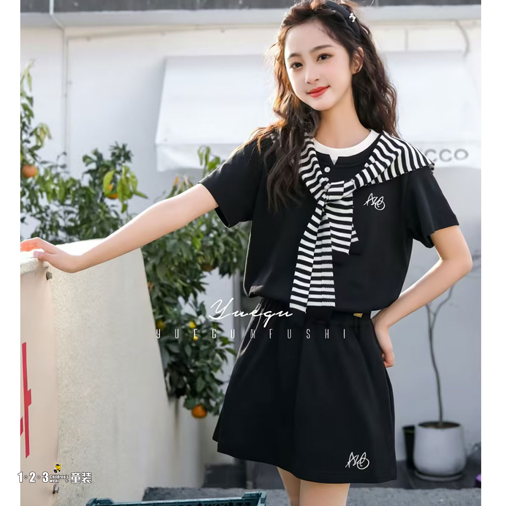黑 夏款 女大童028 YGDD时尚短袖套装123童装连锁