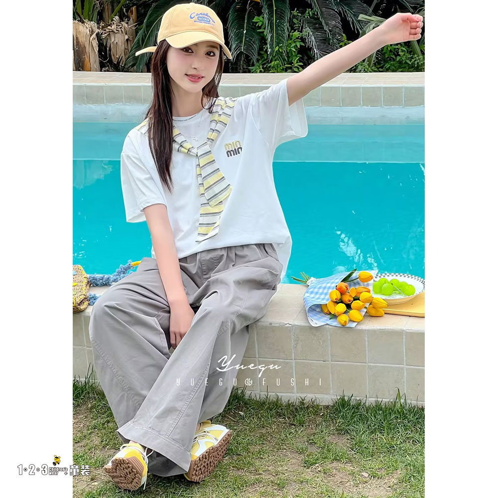 黄 夏款 女大童019 YGDD时尚短袖套装123童装连锁